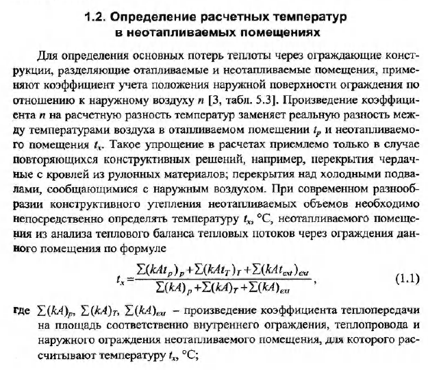 Ох, "горе от ума". Ну зачем вот это Цитата Предположим, что наступил такой день когда температура на улице стала равна расчетной -30 С. А если "стала" - 20? А если -40? Потому в нормах и указана расчетная температура, причем пятитневки, причем с коэффициентом обеспеченности 0.92. При более низких температурах допускается снижение температуры внутри помещений, но это обычно 2-3 дня за зиму. По поводу температуры на чердаке. Испокон веков просто применяется понижающий коэффициент N на разность температур. В современных нормах смысл его вывернули наизнанку. Но в практических целях он вполне пригоден, чтобы определить температуру, которая будет "как бы расчетной" на чердаке. И безо всяких сопротивлений кровли. То же самое присала в ветке про температуру неотапливаемого подвала. Ждем трехмерной модели и вопроса про температуру в неотапливаемом тамбуре.