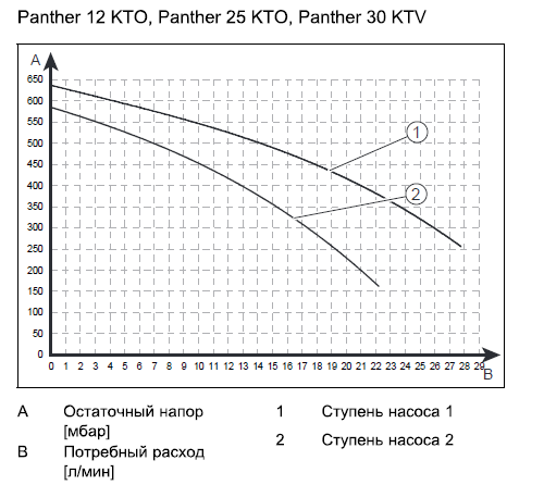 После расчетов 1 и 2 должны получиться значения производительности и напора, определяющие рабочую точку, по которой выбирается модель насоса. У каждого насоса есть своя гидравлическая характеристика. Наиболее оптимальная работа насоса в средней трети графика (очень часто эта зона выделена толстой линией). Очень редко бывает, когда расчетная точка совпадает с гидравлической характеристикой насоса. А чаще всего эта точка лежит между характеристиками двух насосов. При выборе конкретной модели насоса не нужно выбирать самый мощный, поскольку даже менее мощный насос полностью обеспечит систему отопления.