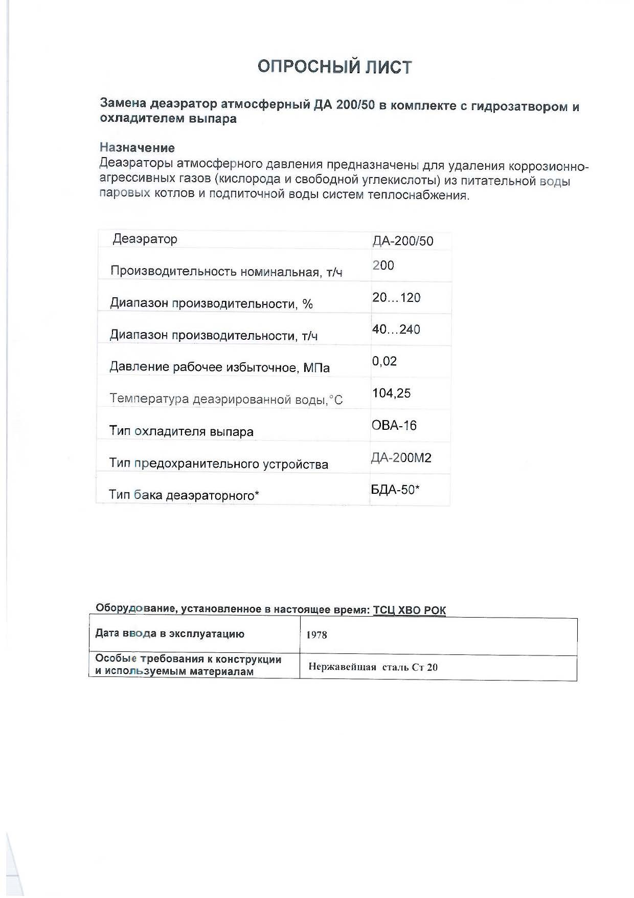 Цитата(alex_suba @ 1.3.2019, 15:47)  Мне нужна инфа, есть ли какие то требования к поставке атмосферных деаэраторов так сказать в стандартной комплектации. Такую информацию может дать только завод, и выглядеть она (инфа) будет примерно так: "ДА .../... в собранном виде является не транспортабельным, так как не соответствует габаритам ж/д (авто) перевозок. В связи с чем, с завода поставляется укрупненными блоками (раздельно - бак, колонка, арматура и т.п.), которые монтируются в готовый агрегат на месте его (ДА) установки в котельной (ЦТП и т.д.). В комплект технической документации ДА .../... входит инструкция по монтажу и эксплуатации."