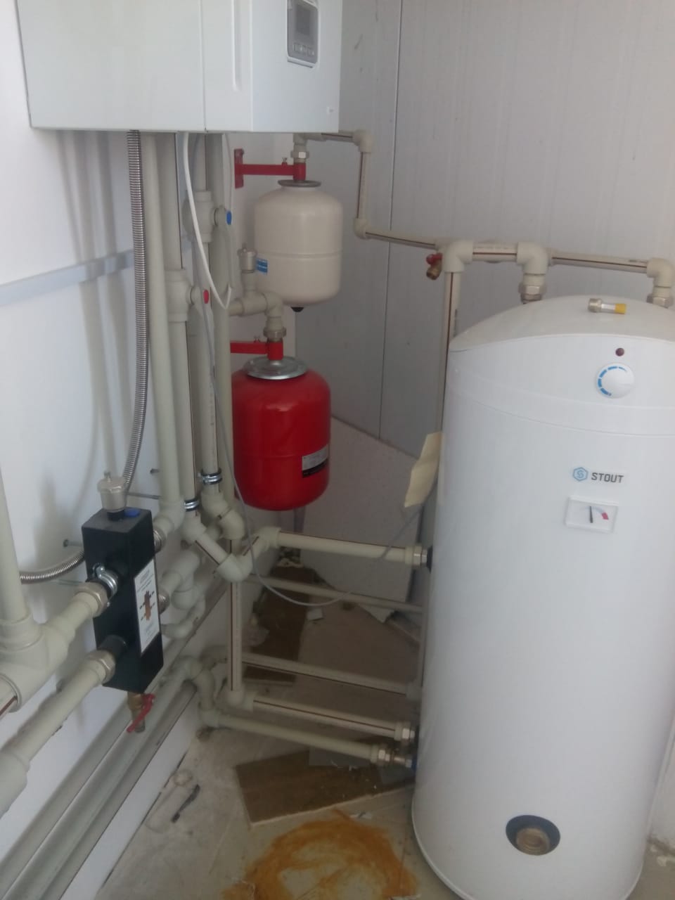 Также отсутствует подключение расширительного бака К7 к канализационной системе, которое вы нарисовали. На фото просто кран.
