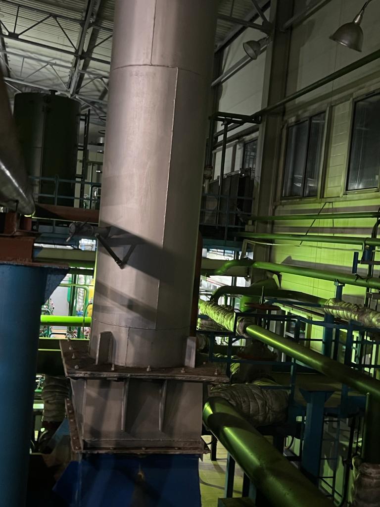 Так и есть. Вставляем через крышу, иначе никак, как можно меньше сварных швов. В месте прохода через крышу гидротеплоизоляция. Я бы еще добавил теплоизоляцию трубы, которая возвышается над крышей и выполнить ее можно еще пока труба находится на земле. Сегодня измеряли толщину стенки трубы на похожих котлах, где труба была заменена, и ее толщина 8 мм, длина 19 м, только диаметр 500 мм, так что возможно уже была замена, поскольку по паспорту Ду600. С другой стороны, если с Ду500 проблем не было, можем немного снизить давление на котел и заложить толщину стенки 8 мм.