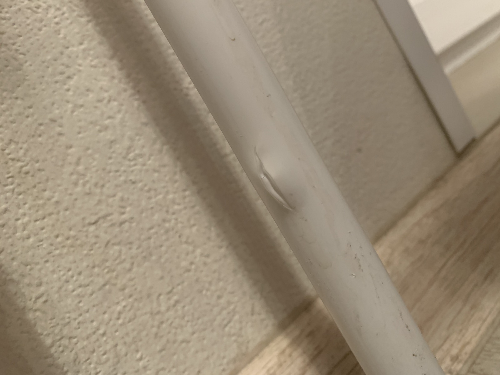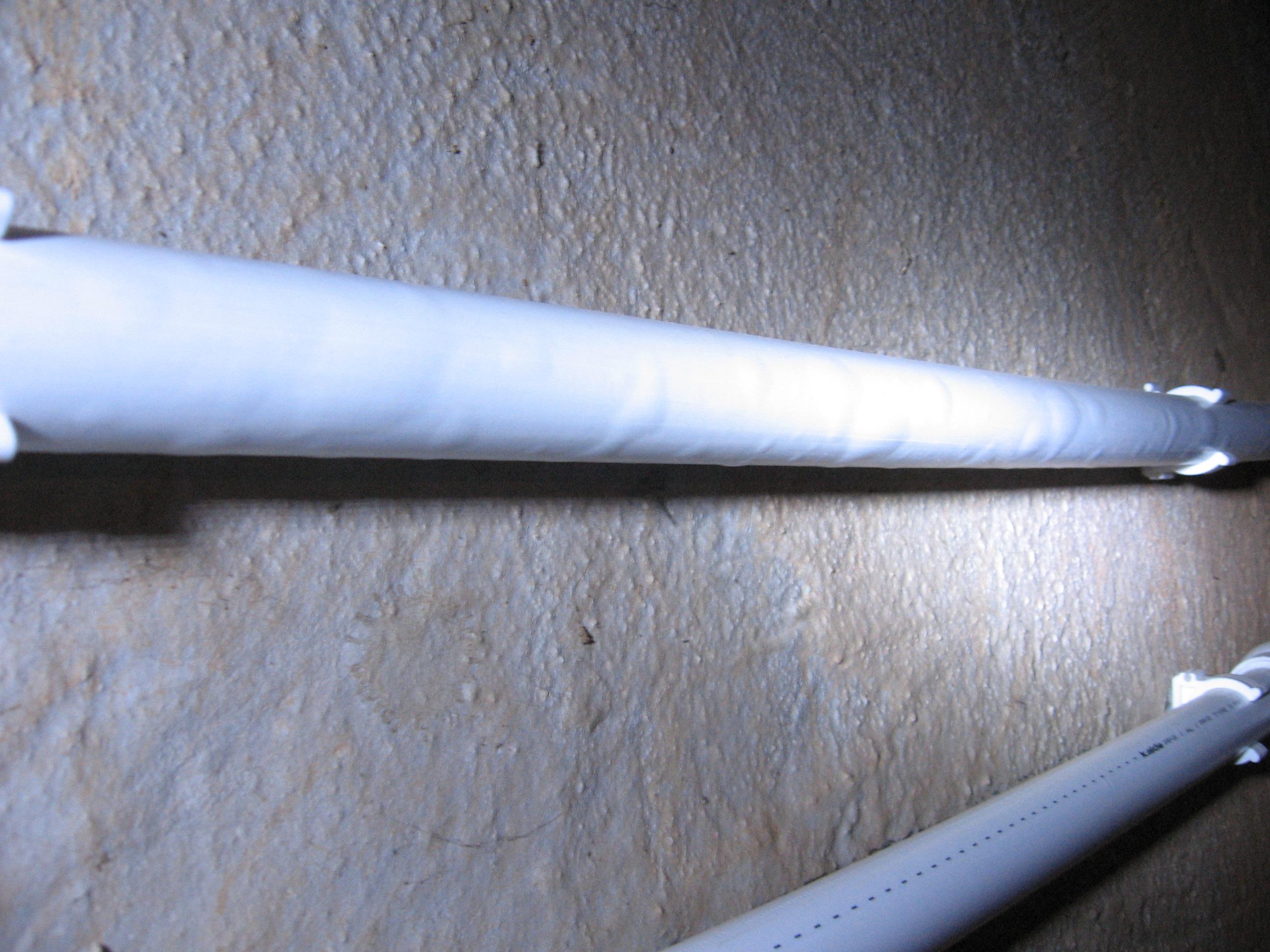 Вобще разрушение очень похоже на воздействие солнечного света (хотя откуда в гардеробе солнечный свет?) Мало ли на все трубы падал свет, а напротив средней трубы створка, которая отбрасывала тень на неё вот и не испортилась. Вобще в металлопластиковых трубах наружный слой выполняет функцию защиты алюминевого слоя от внешних воздействий. Основной несущий слой - это внутренний (как правило из сшитого полиэтилена). При повреждении внутреннего слоя или слоя алюминия труба на все 100% выходит из строя. Повреждение наружного слоя влияет на сохранность алюимия, при отсутстви наружного слоя очень легко повредить тонкую плёнку алюминия - плюс он начнёт кародировать. Так что лучше закройте трубы гофрой или замените эти участочки на новые трубы. По поводу пола, если причина всё таки в свете, то проблем скорее всего не будет. Если нет, то надо дальше искать причину. P.S. А может всё таки моль... у вас не в Припяти дом?