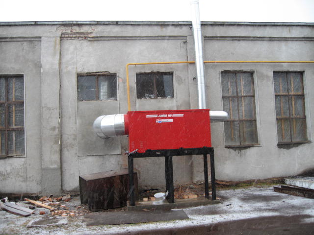 Предлагаю фото еще одного объекта где успешно применяется современная система воздушного отопления. Здесь также теплогенерирующее оборудование находится за пределами цеха