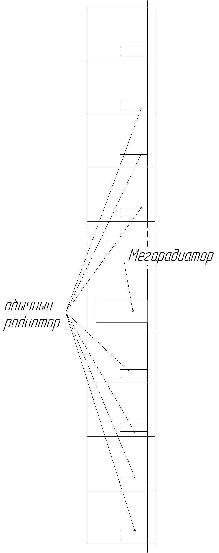Ну хорошо, я не буду делать много маленьких радиаторов. Сделаю один большой но на ту же мощность. И будет весь стояк за меня приплачивать, потому что перепад температур у меня такой же как у всех будет, только расход побольше.