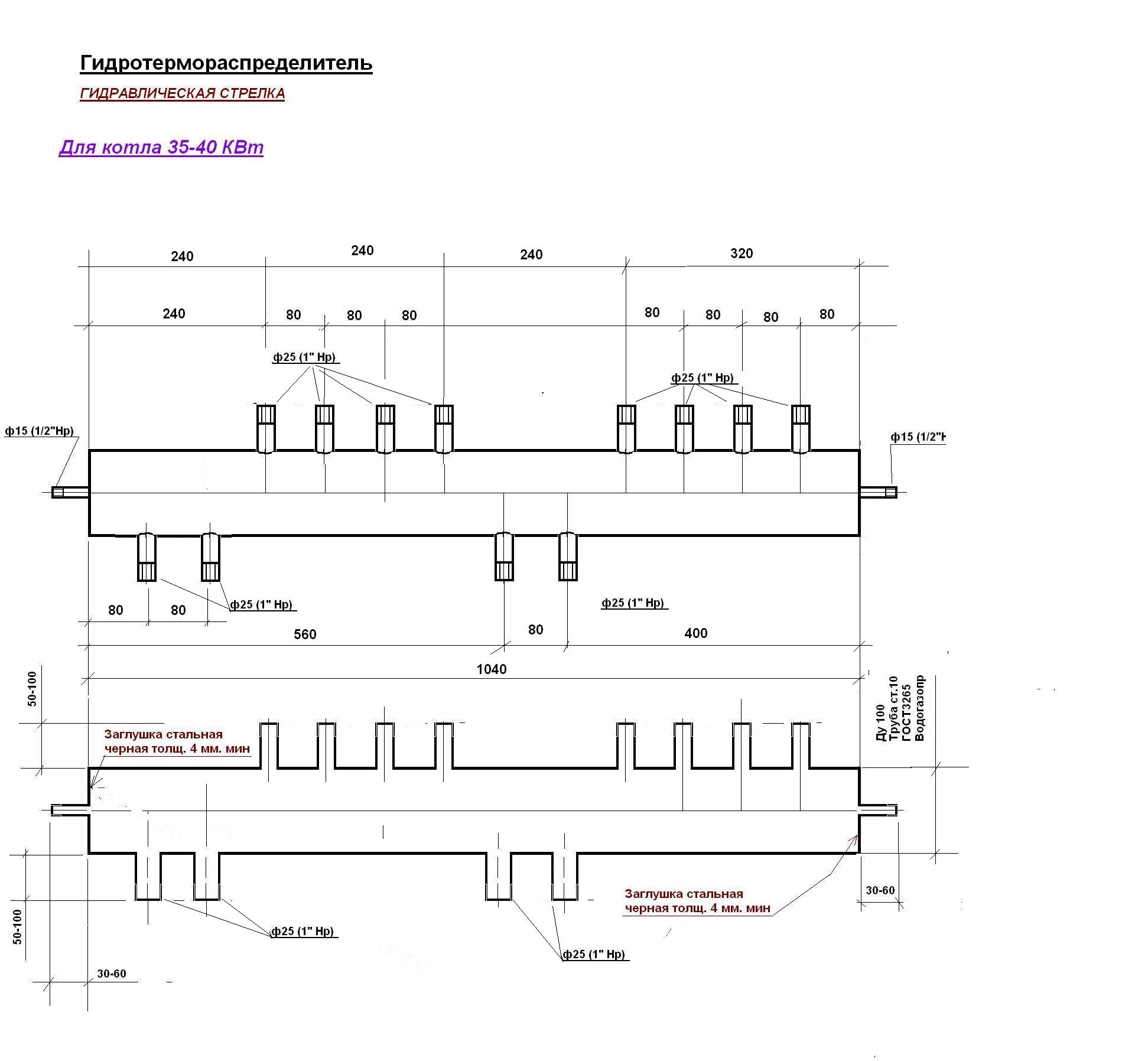На два котла, с косвеником и двумя контурами. С гидрострелкой.