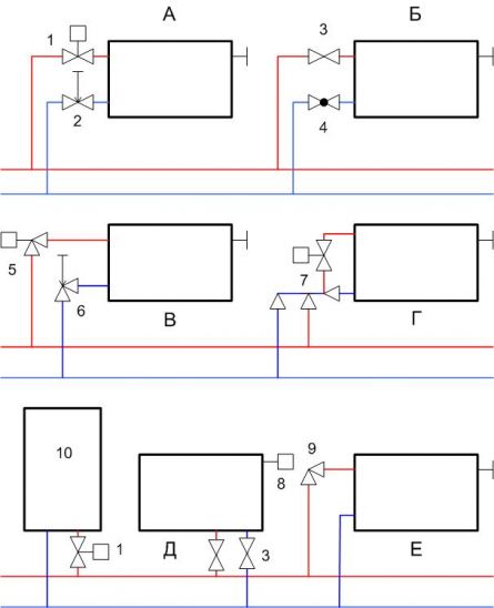 По циферкам не знаю, а вот схема присоединения примерно такая схема "Г" Внизу только трехходовой стоит, а вверху терморегулятор