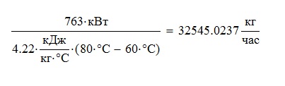 Всем добрый день! Обращаюсь к специалистам за помощью!) Температура теплоносителя 80 град. (вода) Тепловая нагрузка 763кВт/час Возможно ли посчитать расход теплоносителя за час! Извините если вопрос не корректный, просто в данной области мои знания минимальные!
