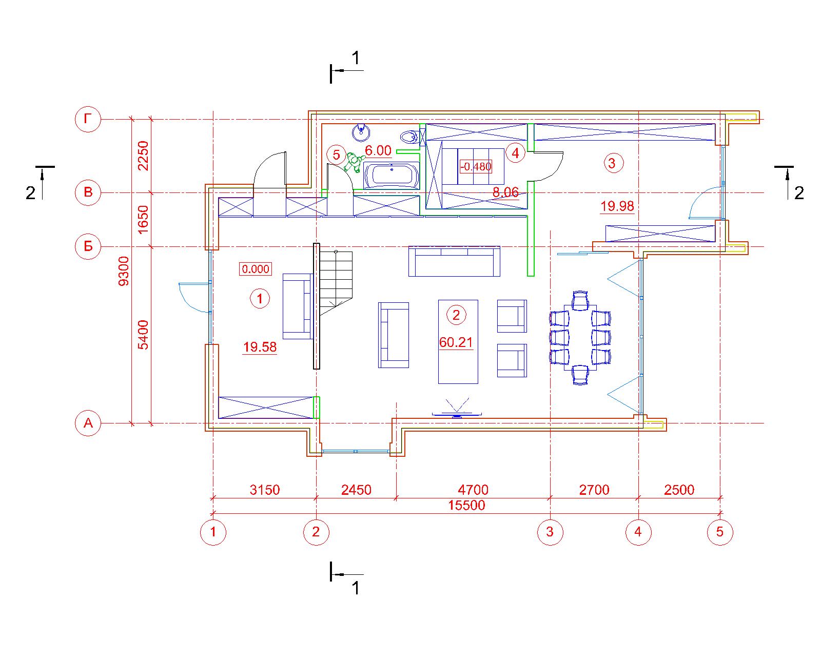 Добрый день, хочу поделиться своим проектом запроектированным для одного хорошего человека (с достатком чуть выше среднего, и желающем жить в экологичном доме). Но еще больше хочу обсудить принятые решения и услышать предложения по модернизации проекта, снижению его стоимости, энергопотребления и повышению энергоэффективности, комфорта и экологичности. Итак принятые решения. 1. На участке дом спроектирован с учтом сторон света. Т. е глухая стена на север и помещения типа кухня, кладовая, су около северной стены. 2. Большие площади остекления ориентированны на восток, юг и запад. С учетом соседских построек, открывающихся видов, и правил инсоляции. 3. отдельным блоком будет стоять небольшая баня (используемая как домик для гостей) в которой будут все инженерные приборы для обслуживания дома, бассеина и пруда для карпов кои. 4. По конструкциям. Фундаменты- бнс 1350 шаг 2400, связанные ростверком 400х450.ростверк над землей, потом утеплиться. несущий каркас колонны350х350, перекрытие между 1 и 2 эт монолитное, покрытие деревянное с уклоном и есть зонами плоская кровля. Баня будет из сборного деревянного каркаса (точно не определенна технология) на винтовых сваях. 5 По материалам. Наружние стены из керамического камня POROMAX 380, внутренние из забутовочного кирпича 120. Утеплитель пеноплекс 80мм. фасад штукатурка по сетке и частично навесной фасад из термодоски (кто посоветует недорогую и приемлемого качества?). Кровля односкатная металл с пуралом замок стоячий фланец, там где плоские участки пирог по Технониколю. Остекление хочу принять алюминиевые системы со стеклопакетами с двумя камерами. Есть вопрос по роллетам на нижнем этаже нужны ли (для защиты и как доп утепление на ночь.)? 6 Отопление газовое, кател конденсационный (но хотелось бы еще эффективней). Будут теплые полы, встроенные конвекторы под витражи и наверно немного батарей всетаки нужно поставить. Центральное кондиционирование совмещенное с вентиляцией (не знаю на сколько это реально и дорого). встает вопрос о рекуператоре, нужен ли он на дом 230кв.м? 7. Бассеин будет переливной, с эко фильтром, возможно со спец. жалюзей для безопасности от детей и животных и так же для нагрева воды. Хотели еще запроектировать солнечный коллектор для нагрева воды в бассеине, но не знаю на сколько это оправданно и можно ли его вкллючить в другие системы (например на теплый пол в баню). Надеюсь он буде нагреваться весь день от движения солнца. 8 По экономии. В здании бани, будет двухкубовый бак для дождевой воды, для полива. В кровле над гардеробами хотел сделать солнечные коллекторы для света, но боюсь что сильно нарушу герметичность крыши, да и какихто тех решний не нашел для примера, так что пока под вопросом. 9 По автоматизации. Дымоуловители с блокировкой газа. Аквастопы. Датчики движения на свет и на гор. воду в с/У (чтобы циркуляционный насос не гонял попросту воду) 10. Не понятные для меня вопросы. Как избежать грызунов в каркасной бане? Как завязать все системы и датчики в единый комплекс? на сколько это реально и дорого? Какие нужны условия для карпов Кои? Как сделать печь для бани энергоэффективной, и чтобы она грела воду на купель, теплые полы и нагревала свежий воздух в бане. Высказывайте ваши предложени по фирмам, узлам, решениям, технологиям, вобщем по всему что интересует. С удовольствием подискутирую для н