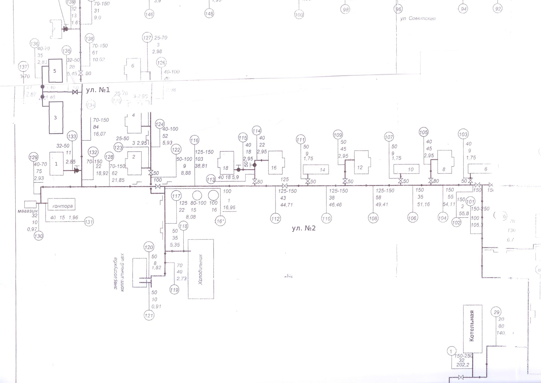 Всем привет! Приложил план тепловых сетей небольшого поселка. Дома кирпичные, двухэтажные. На улице №1 дома №3 и №5 отапливаются очень слабо. Дом №1 не имеет особых проблем. Еще там есть Контора, в которой жарко. Про проблемы в домах находящихся после домов №3 и №5 мне неизвестно, вроде там всё нормально. Давление в доме №1 на подаче 3.2 атм., на обратке 3.0 атм. В доме №3 перепада нет, значений давлений не знаю, думаю, что примерно по 3 атм. В доме №5 на подаче 2.8 атм, на обратке нет манометра. На трубопроводе, проходящем к домам №3 и №5, установлена задвижка и два вентиля. В чем может быть проблема?