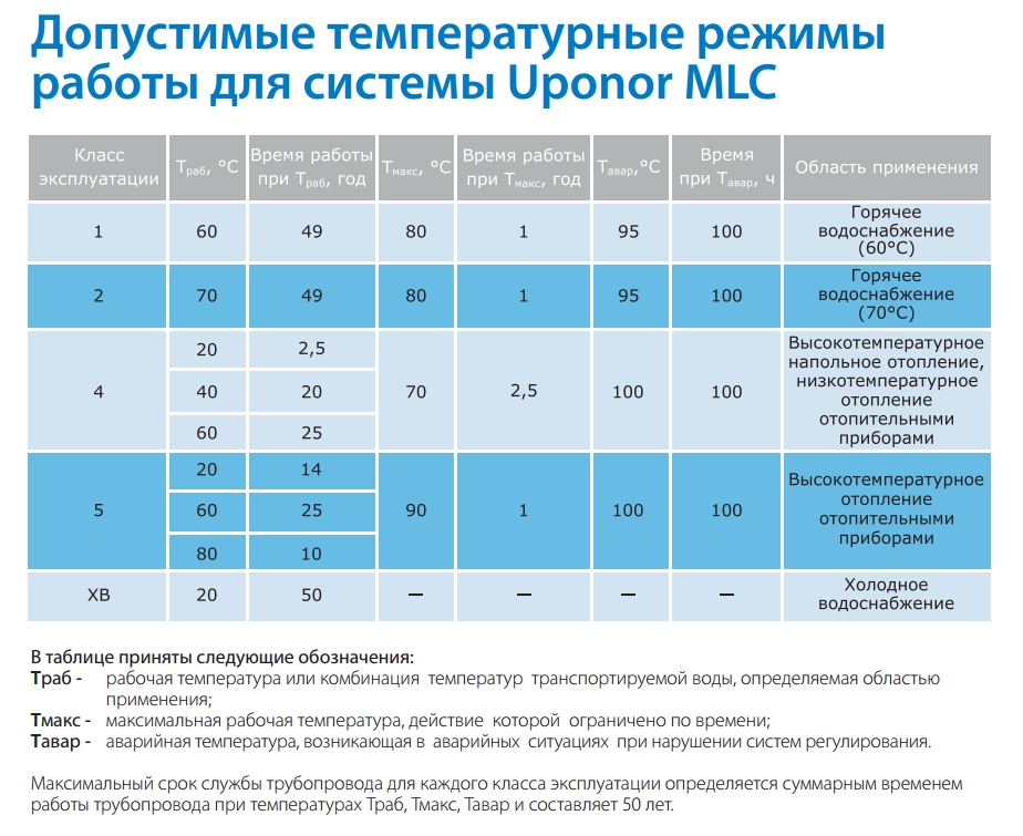 2. У других производителей есть таблички, где на основе давления-температуры рассчитывается примерный срок службы системы. Пример -Экопластик руководство по монтажу.
