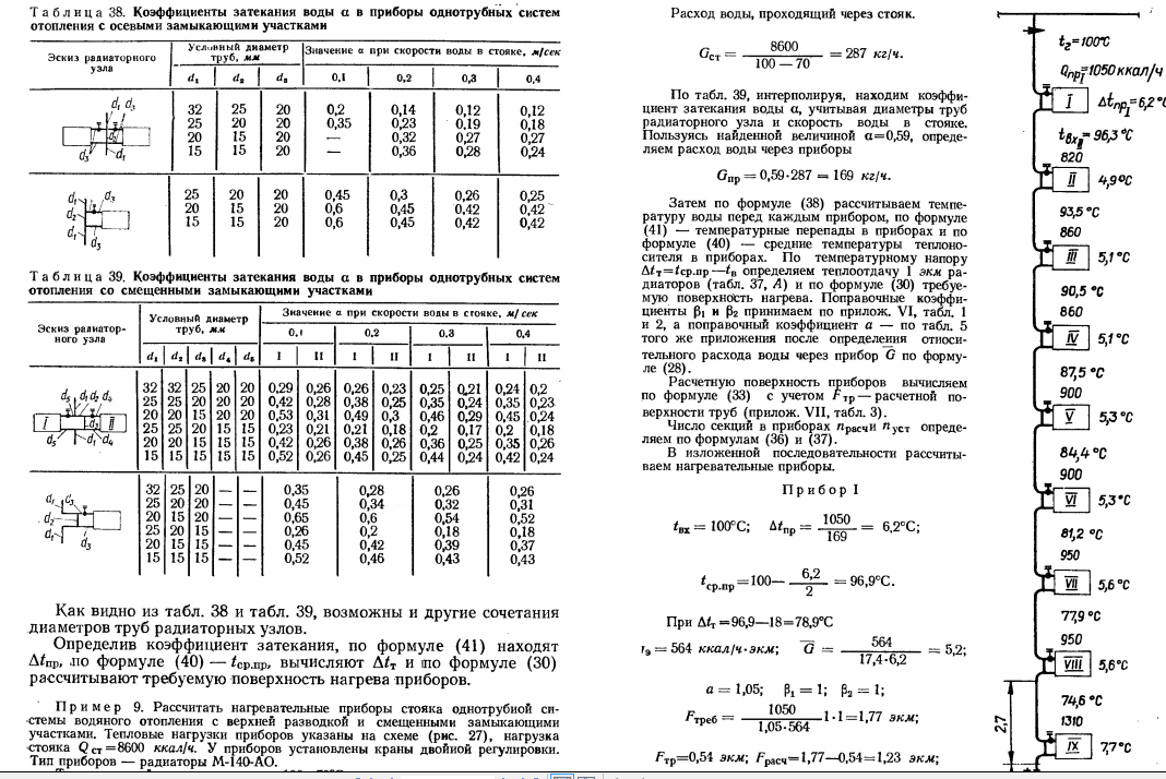 Однако в расчете у Щекина в "Расчете систем центрального отопления" нет смешения.Температура на входе во второй прибор считается как у проточного участка.Скрины прилагаю.
