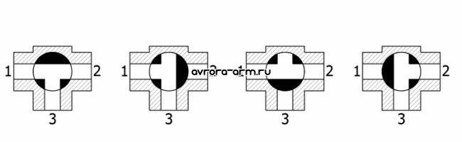 Трёхходовой т-образный шаровой кран.