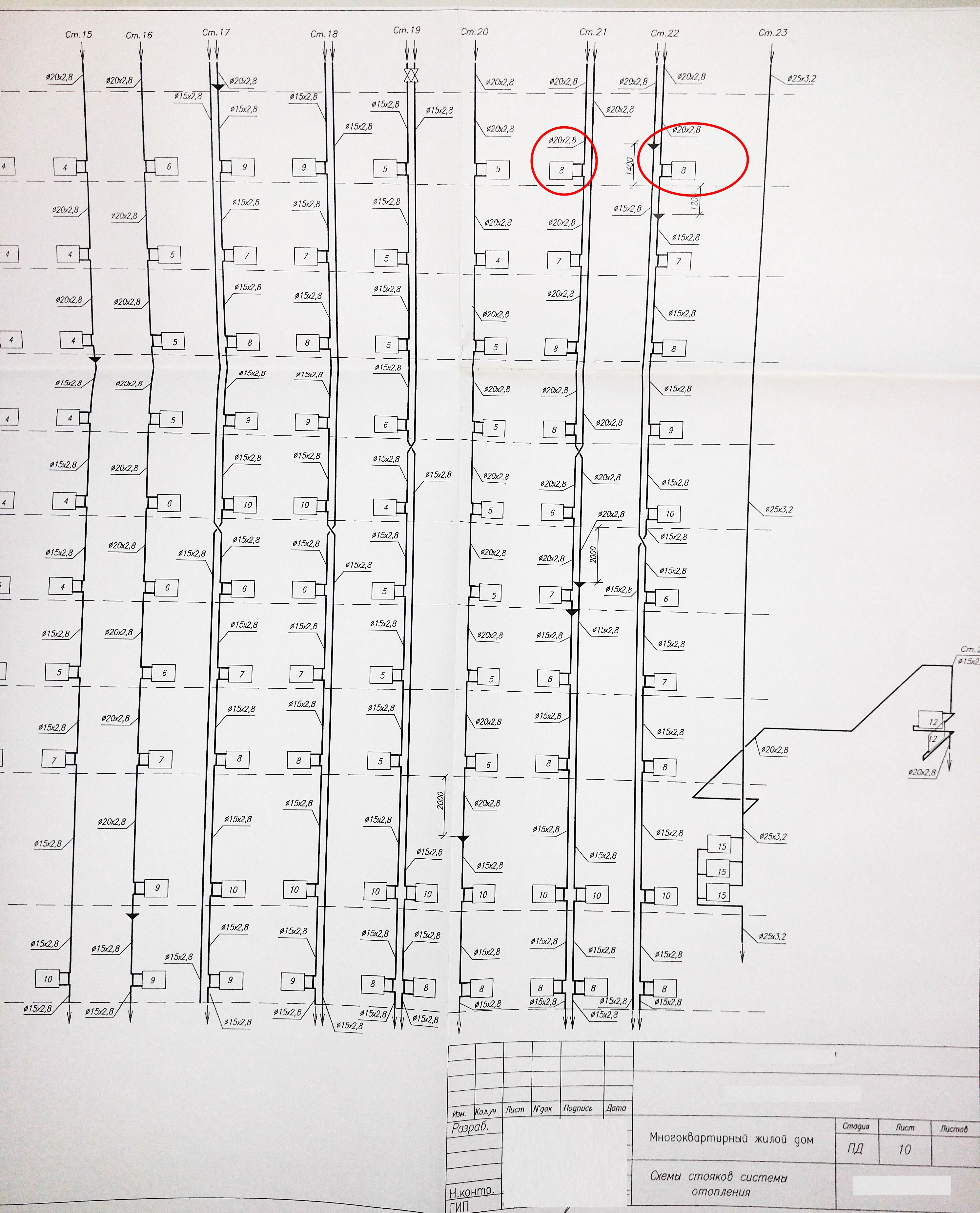 Помогите пожалуйста с квартирным отоплением. Подскажите, что обозначают цифры на радиаторах в проектной документации - количество секций?В новостройке холодновато, на улице всего -4, хочу проверить почему и предъявить застройщику, либо УК. Дом введён в эксплуатацию, на гарантии, взял в УК проектную документацию, чтобы проверить заверения застройщика, что "всё по проекту". Разводка труб и установка радиаторов входят в объём работ застройщика. Крышная котельная, в квартирах установлены алюминиевые радиаторы - в местах, обозначенных в проекте. Радиаторы и трубы тёплые, в котельной автоматика регулирует температуру теплоносителя в зависимости от температуры на улице. В окна нигде не дует, т.е. явных косяков не видно, регляторы радиаторов на максимуме. В проекте на этажном плане на стояках 21 и 22 написано 7, в общей схеме стояков - 8. Фактическое количество секций установленных радиаторов соответствует цифрам на этажном плане. Если это количество секций, то как оно может различаться в разных частях проекта? Проект разрабатывался проектной организацией по заказу застройщика, проверялся. Дом сдан госкомиссии. Удастся ли заставить застройщика установить радиаторы с количеством секций как на общей схеме? На соответствие каким ещё правилам стоит проверить расчёт и установку радиаторов?