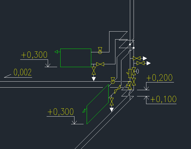 2) Допустимо ли организовывать подводку к отопительным приборам сверху вниз (см. файл Подводка). Дело в том что хотел сэкономить место и повел магистральные трубы одна над другой, то есть в вертикальной плоскости, но в здании нет подвала, а в помещениях есть окна. Соответственно, расположив радиаторы под ними, нет места для регулирующей арматуры на стояках. Пришлось задирать подводки. Но не знаю на сколько я поступил правильно.