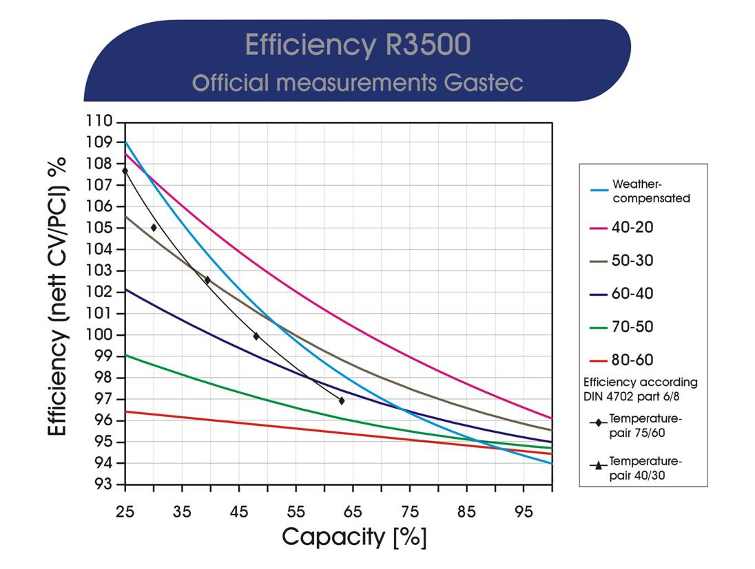 Цитата(Sanych @ 5.4.2006, 11:24) [snapback]28338[/snapback] И все-таки речь шла о кпд. Ведь не секрет, что с уменьшением мощности кпд значительно уменьшается. Пусть котел работает в номинальной нагрузке 5-15 % времени, но котел то имеет согласно проделанным расчетам мощность на 15 % больше требуемой, а значит в любом режиме сжигает газ на 15 % больше. Теперь по поводу радиаторов. Завышенная площадь радиаторов - больше вложенных денег в систему, что никак не может повысить эффективность системы. Во-вторых, если у нас стоит крышная котельная, или же система подключена к тепловым сетям по независимой схеме, то экономия за счет пониженной температуры будет минимальной. При увеличенной мощности котла и радиаторов, без автоматического регулирования и температура в помещении будет выше, а значит и его теплопотери. Так что писать про энергосбережения при завышенной мощности отопительного оборудования думаю не уместно. Уважаемый, Sanych, Не рассказывайте ни кому больше чушь о снижении КПД при уменьшении мощности котла. См. диаграмму. Применять утиль и цитировать бред не делает никому чести. Что касается радиаторов - то если внимательно посмотреть ОБЫЧАЯ система (то есть традиционно расчитанная на график 95/70) с ОбЫЧНЫМИ радиаторами работает с графиками пригодными для использования с конденсационной технико 70% времени в году! Надо устанавливать погодозависимое регулирование котловой водой. Как это принято в цивилизованных странах. Подключение крышной котельной по независимой схеме - пример невежества. Использование котлов для крышных котельных предполагает применение схем с гидравлическим разделителем. Независимая схема- раскатывание на деньги строителей и потребителей. Стоимость котельной повышается на цену теплообменников и увеличивается мощность и цена насосов. И соответственно выше экспуатационные расходы на электричество и газ.