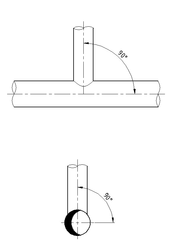 Вопрос в перпендикулярности врезки в плоскости оси трубы и в плоскости и в плоскости перпендикулярной оси турбы... см. рис. Второй рис кажется бесполезным (типа ось основной трубы можно повернуть как надо, но это до того момента, когда на ней ничего нет. если на ней хоть с одной стороны уже есть например фланец, то надо точно выдерживать)