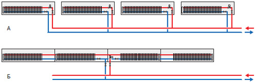 Заказчик закупил 86 конвекторов типа Универсал, как увязать их правильно???. Горизонтальная двухтрубка с попутным движ.??? , говорят перерасход трубы.