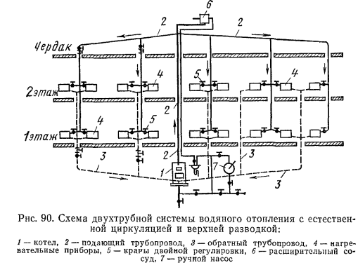 1. Крайне неравномерно работающая верхнерозливная двухтрубная система отопления, которая когда-то была гравитационкой при своей котельной, но ныне работает от сетей посредством элеваторного узла.