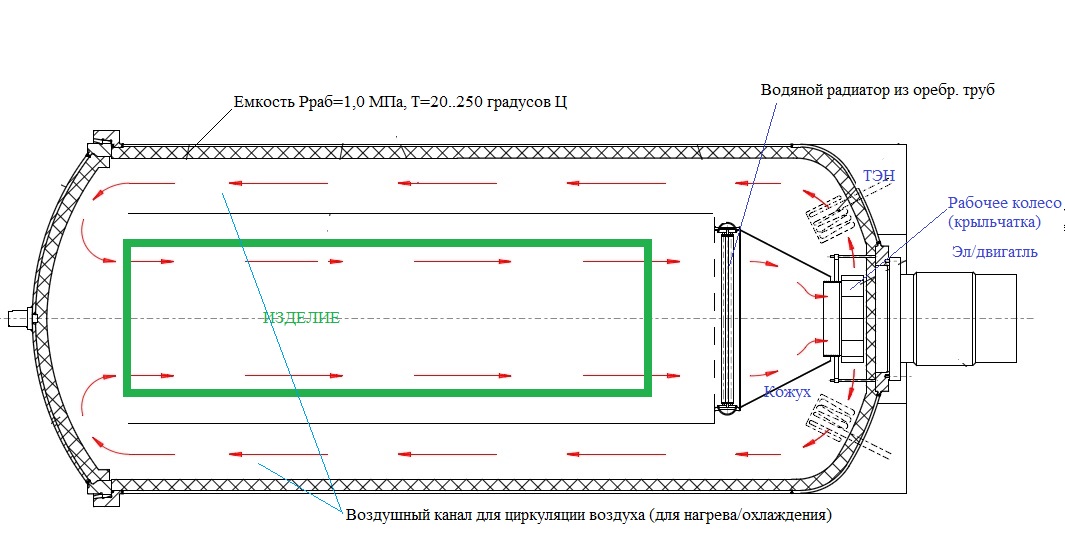 Мне представляется это малоэффективным, так как коэффициенты конвективной теплоотдачи от теплообменника к воздуху и от воздуха к поверхночти печи - очень низки. Поэтому время охлаждения будет очень большим, а скорость - низкой, гораздо меньше 3-х градусов в минуту.