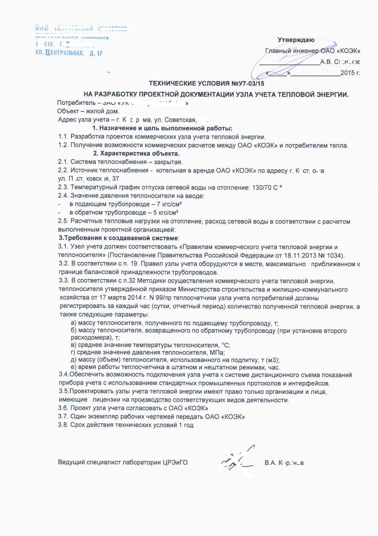 Похоже, всё дело в отсутствии нагрузок в тех условиях на запрашиваемый объект. Там в ТУ даже двоеточие стоит в п. 2.5 и сразу п.3, будто забыли указать нагрузки. Проект нужно искать на ОВК по этому объекту, а как ещё подбирать оборудование для узла учёта без нагрузок? Может конечно по укрупнённым показателям можно примерно посчитать, но это надо согласовать с ресурсоснабженцами