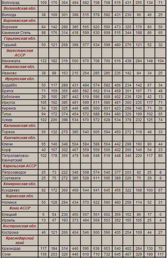 9 . СУММАРНАЯ СОЛНЕЧНАЯ РАДИАЦИЯ (ПРЯМАЯ И РАССЕЯННАЯ) НА ВЕРТИКАЛЬНУЮ ПОВЕРХНОСТЬ ПРИ