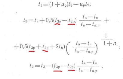 тогда как и написано в самом учебнике - индекс "р" означает расчетные условия, если рассчитываются промежуточные температуры графика 95/70, то t3р = 95; t2р = 70.