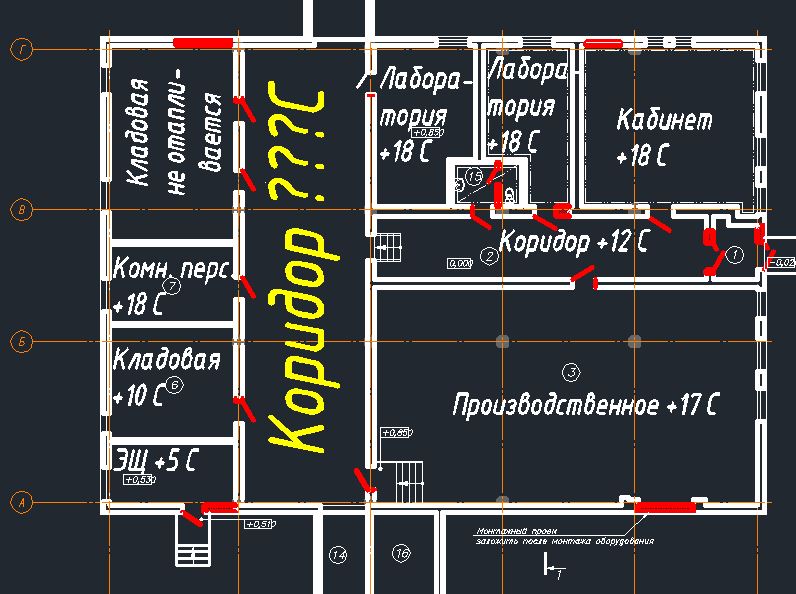 Есть производственное здание (см. картинку). В него встроено также одно административное помещение и одно бытовое. Волею судеб здание проектируется с электрическими отоплением и вентиляцией. И потом идёт в экспертизу. Посему я пытаюсь определить минимально возможные затраты на отопление. Никак не могу для себя решить, необходимо ли отопление в центральном большом коридоре? Мне бы хотелось отопить часть справа от коридора и три помещения слева внизу (с соответствующим утеплением, конечно). Сверху и снизу здание соединяется неотапливаемыми галереями с коровниками. Посоветуйте, пожалуйста.
