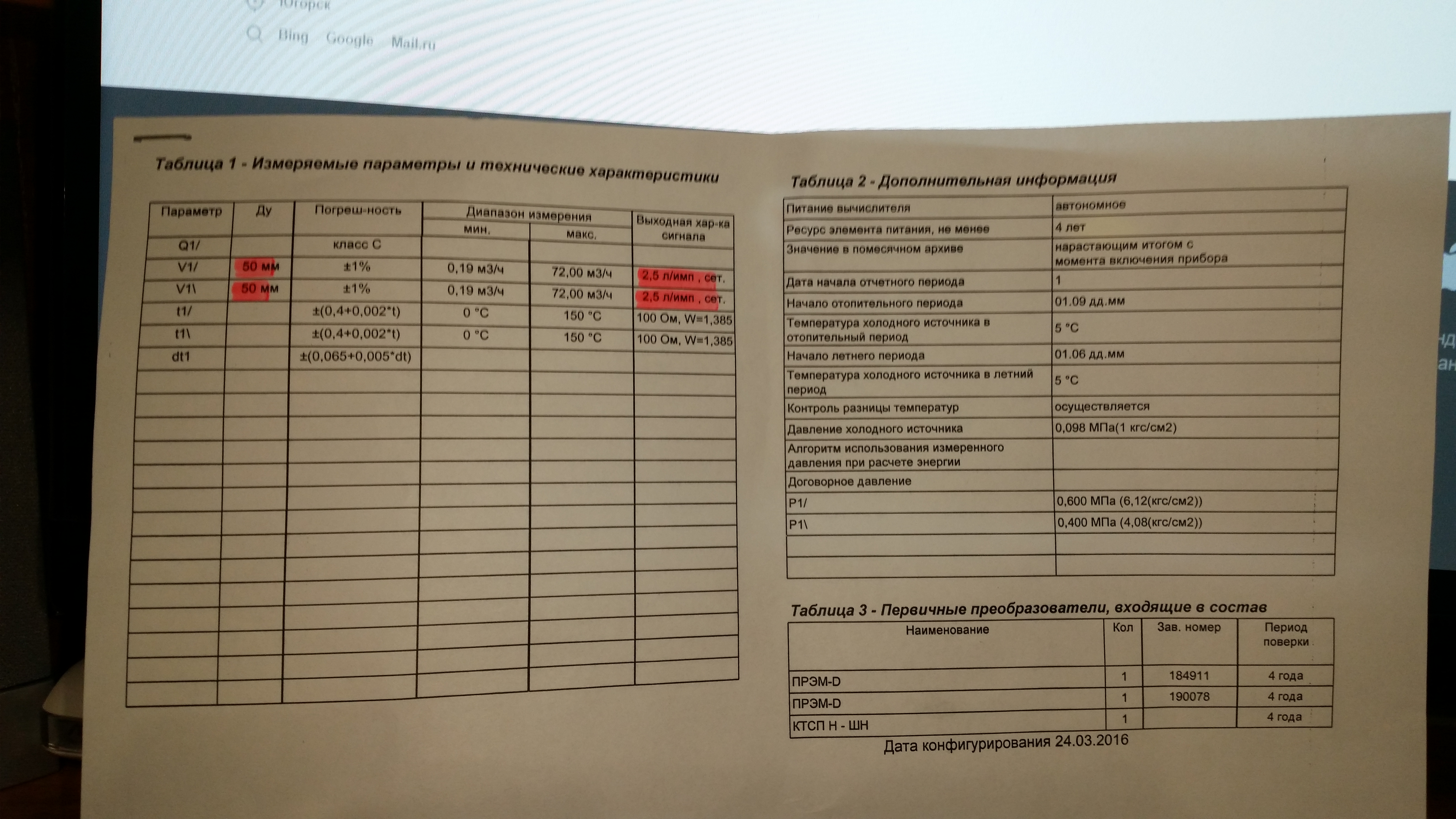 зделал запрос в управляюшуюю компания о выдаче результатов по конфигурированию теплосчетчика и мне выдали вот такую бумажку (фото прилагается) если я правильно понял проверить питание, которое подается на расходомер?