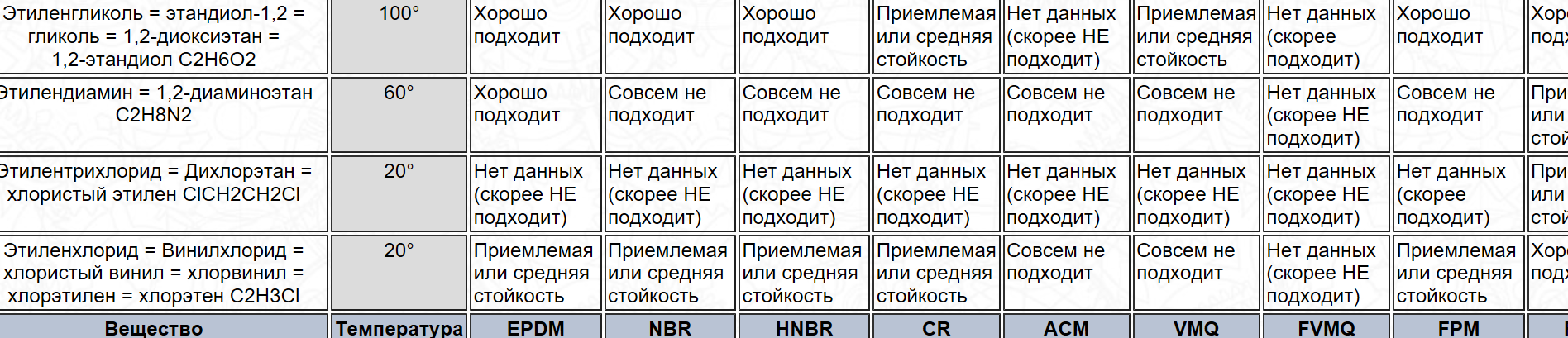 М-да. Не всё так однозначно. В таблице химической стойкости, устойчивость EPDM к хлору указана как "приемлемая" или "средняя", но не как "хорошо подходит". При температуре 20 градусов. https://tehtab.ru/Guide/GuideMatherials/App...sabilityTable2/В таблице применимости в средах напротив хлора, во всяких разных видах, стоит индекс Н - неприменим https://tehtab.ru/Guide/GuideMatherials/App...sistanceTable1/ Осталось понять, что такое хлорка. Будем искать. Пока не найдётся хлорка, будем применять фталазол, ну то-есть фурацилин, я хотел сказать.