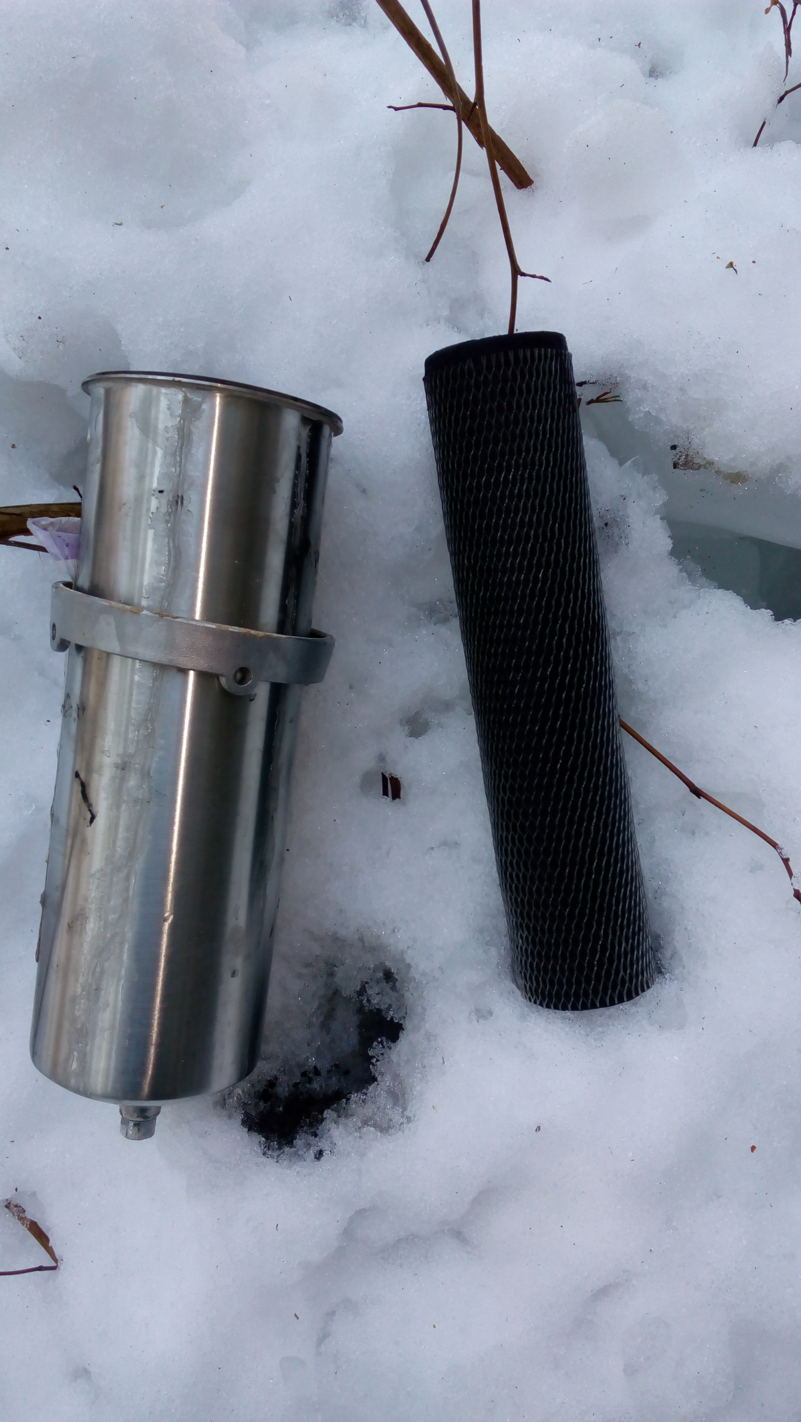 Не удержался. Сердце было неспокойно. Заехал. Проверил. Размыло за сутки. Причём, левый, новый, пятимикронный картридж, после всего одних суток выглядит не намного лучше правого одномикронного, работавшего примерно полгода... Решил не останавливаться на достигнутом! Ещё гранул бахнем! Только, по сложившейся уже доброй традиции, пожалуйста без аплодисментов. Не люблю я этого