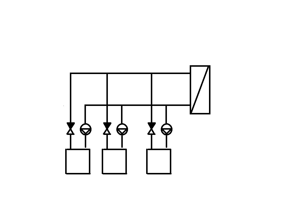 Об этом я тоже написАл: "В тепловой схеме “насос – котёл – водоподогреватель” расход воды через уже работающий котёл значительно уменьшается при запуске ещё одного котла. Например, в схеме с тремя одинаковыми котлами запуск “второго” котла может привести к скачкообразному полуторакратному уменьшению расхода воды через другой, уже работающий котёл"