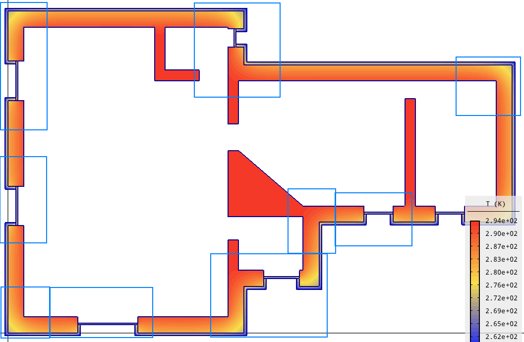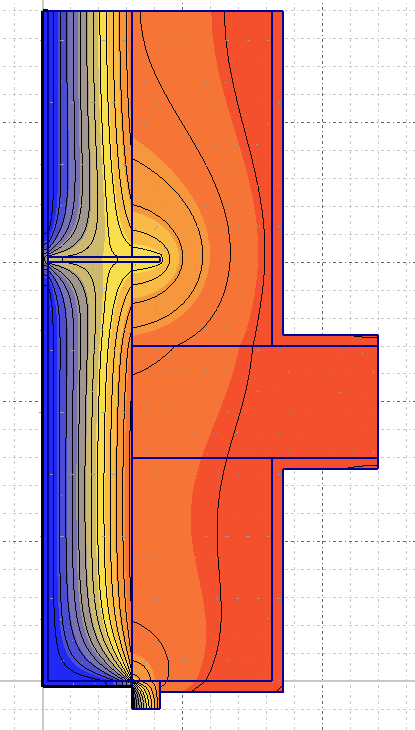 Цитата Пусть в СП это не освещено, но ведь, наверное, есть какая-то практика таких расчетов! Это про как делить на фрагменты? Так надо выделять фрагменты таких размеров, у которых изолинии температурного поля, вызванные неоднородностью, начинают идти параллельно линиям в однородной части. Примерно как на картинках.