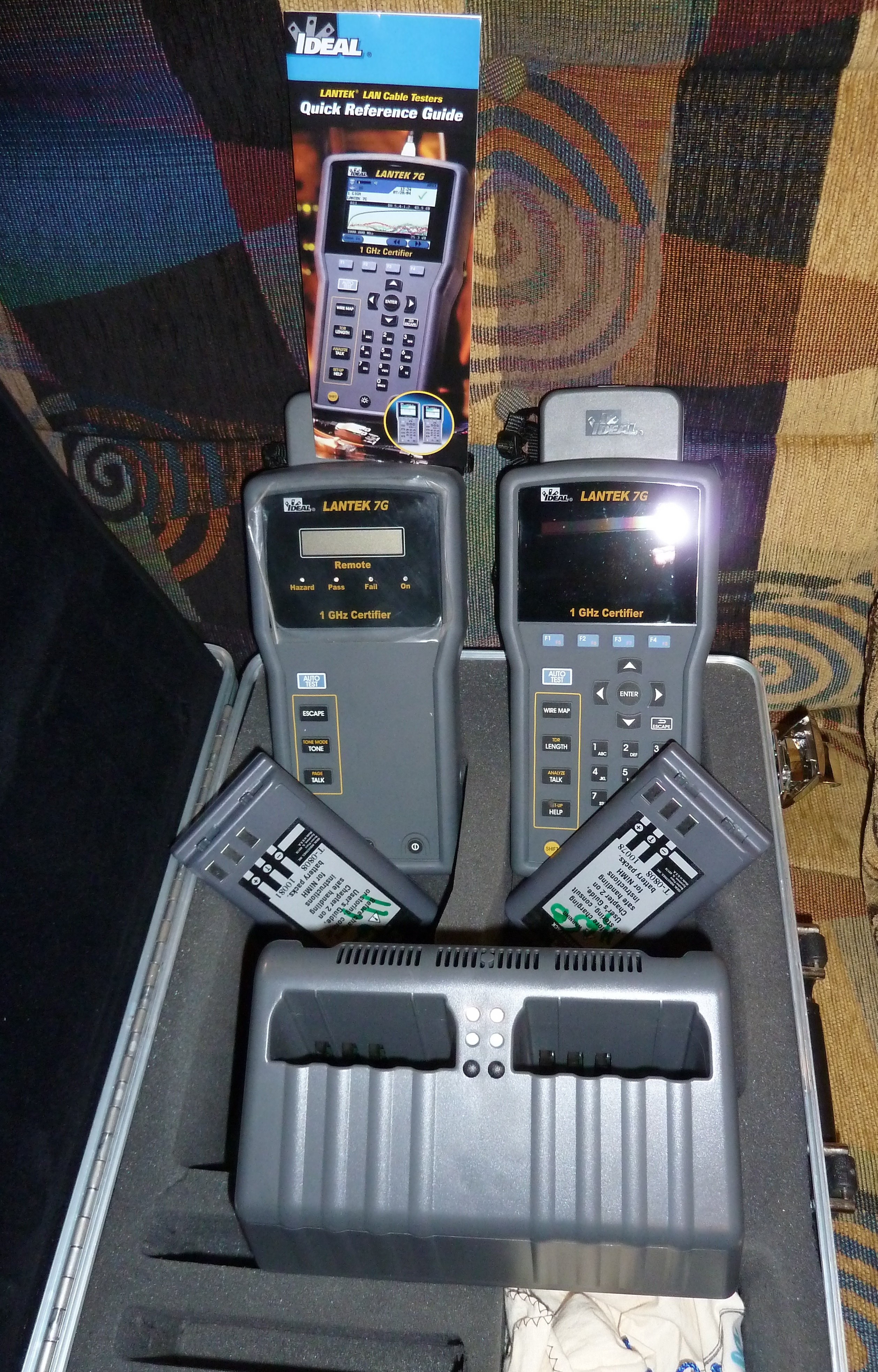 Сертифицированный тестер - анализатор СКС "LANTEK 7G Premium". Trade-Up to LANTEK 7G 1 GHz LAN Cable Certifier Premium Version. Заводской номер основного блока-дисплея 0834077. Заводской номер удаленного блока-дисплея 0834087. Дата изготовления 22 августа 2008 года. Версия программного обеспечения 2-701. Комплектность поставки Комплект LANTEK 7G состоит из головного устройства с дисплеем (поставляется с ярким цветным экраном 1/4 VGA) и удаленного прибора. Удаленный прибор для удобства связи с головным прибором оснащен черно-белым ЖК-дисплеем на две строки. LANTEK 7G, кроме стандартных USB-портов, оборудован двумя полнофункциональными разъемами PCMCIA, предназначенными для подключения компактных флэш-карт и расширения возможностей прибора в будущем. В комплекте с прибором поставляется программа для персонального компьютера LANTEK Reporter, которая может загрузить сохраненные результаты измерений с последовательного порта, порта USB или с компактной карты флэш-памяти и создать краткие суммарные или подробные протоколы паспортизации для конечного заказчика. Преимущества комплектации Premium: • два дополнительных аккумулятора и внешнее двухслотовое зарядное устройство к ним - значительно увеличивается время автономной работы тестера • дополнительная съемная карта памяти на 64 Mb и внешнее считывающее устройство к ней - возможность сохранения большего числа результатов измерений и более простой перенос их на компьютер для дальнейшей обработки • жесткий алюминиевый бокс - гарантия сохранности устройства во время транспортировки Цена 120000 рублей. |