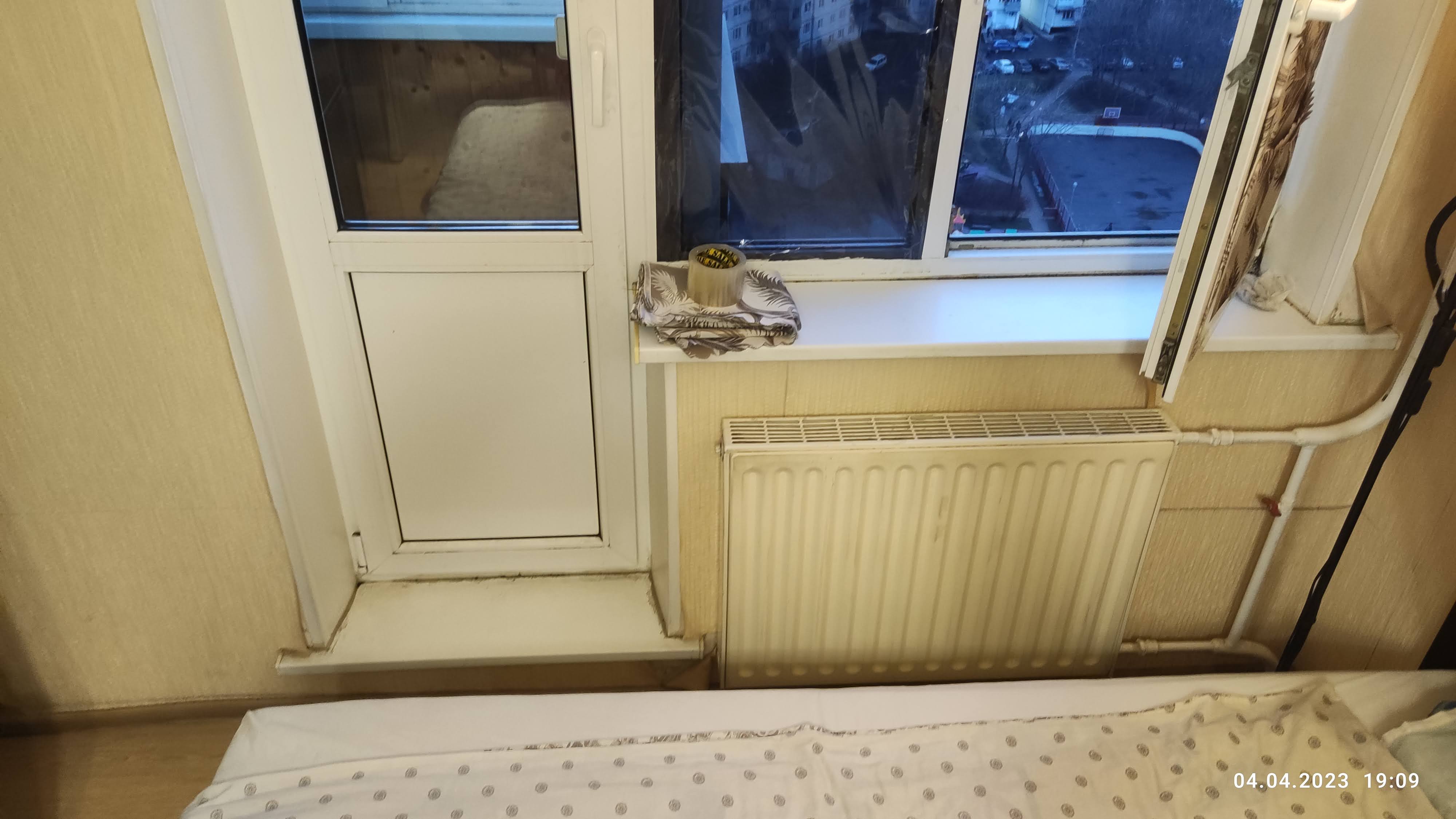 Вопрос - это стояк подъемный или опускной? Я прямой холостой трубы рядом не вижу, соответственно, П-образная система. И если это восходящий стояк, т.е. теплоноситель поступает в радиатор снизу, а выход сверху - не будет у вас нормально работать такой радиатор с таким подключением. Так работают только чугунные толстые МС-ы, все остальное - только с шаманом, и то не факт. Секционный биметаллический радиатор по схеме снизу вверх можно заставить работать, вставив удлинитель потока. А в стальную панельку, как у вас, с вертикальными каналами, даже и такое не вставишь. Плесень на окне, на двери, на плинтусе. Обои отстают. Плохо. Либо холодно, либо слишком сыро. Вентиляцию еще надо проверять, работает ли она вообще.