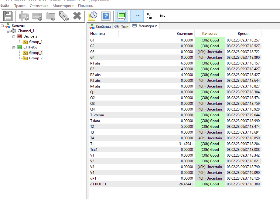 Мы недавно приобрели тепловычислитель СПТ963 для паровой котельной, и позарились что в документации указано - есть поддержка протокола modbus. Но по факту пока не получилось ничего опросить, скорее всего по причине вообще отсутствия карты регистров. То что на офф сайте - мягко говоря, бумага https://www.logika-consortium.ru/wp-content...rogrammista.pdf По запросу у техподдержки выслали "карту", опять же мягко говоря, странную карту регистров.