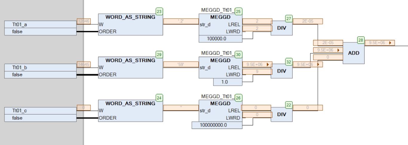 5. Расшифровку, перестановку байт и приведение к числовому виду, придется делать либо скриптом, либо подпрограммой. Для ПЛК выложу наработку здесь. И отдельно спасибо неизвестному программеру (перестановку байт стянул у него. где то на форуме)