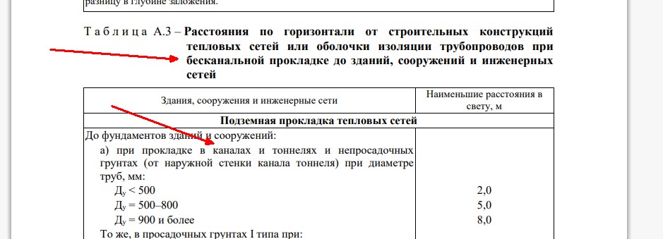 По заданию нужно в непроходном канале провести 5 трубопроводов - Т1 Т2 Т3 Т4 В1. Трубы Т1-Т4 - 57 Ст20 в ППУ 40 мм, В1 - 63 ПЕ100. В канале положил так - В1 самый крайний от фундамента (5м) и Т4-Т1 ближе к фундаменту. НО ВСЁ В ОДНОМ КАНАЛЕ. Глубина прокладки - как сущ. системы к который подключаемся (около 1.8 метров). Сущ системы идут "рядом" друг с другом параллельно. Здание находится в ЯНАО п. Пуровск. Надземную прокладку не рассматриваю + спорт комплекс есть дети и я видел запрет на это в СП.