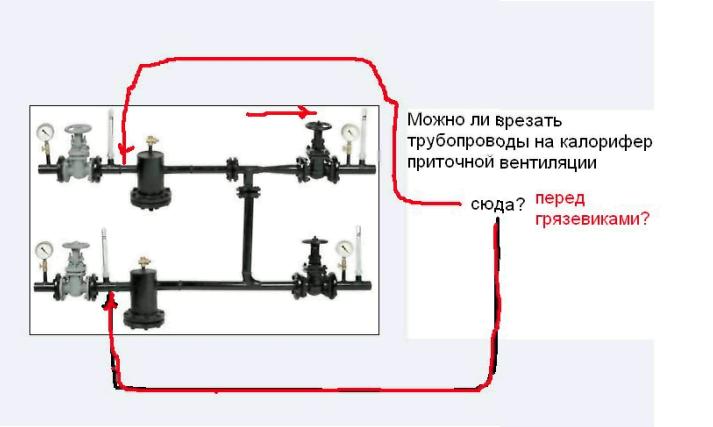 Коллеги подскажите, пожалуйста, можно ли подключить калорифер приточной вентиляции к элеваторному тепловому узлу между входной задвижкой и грязевиком?