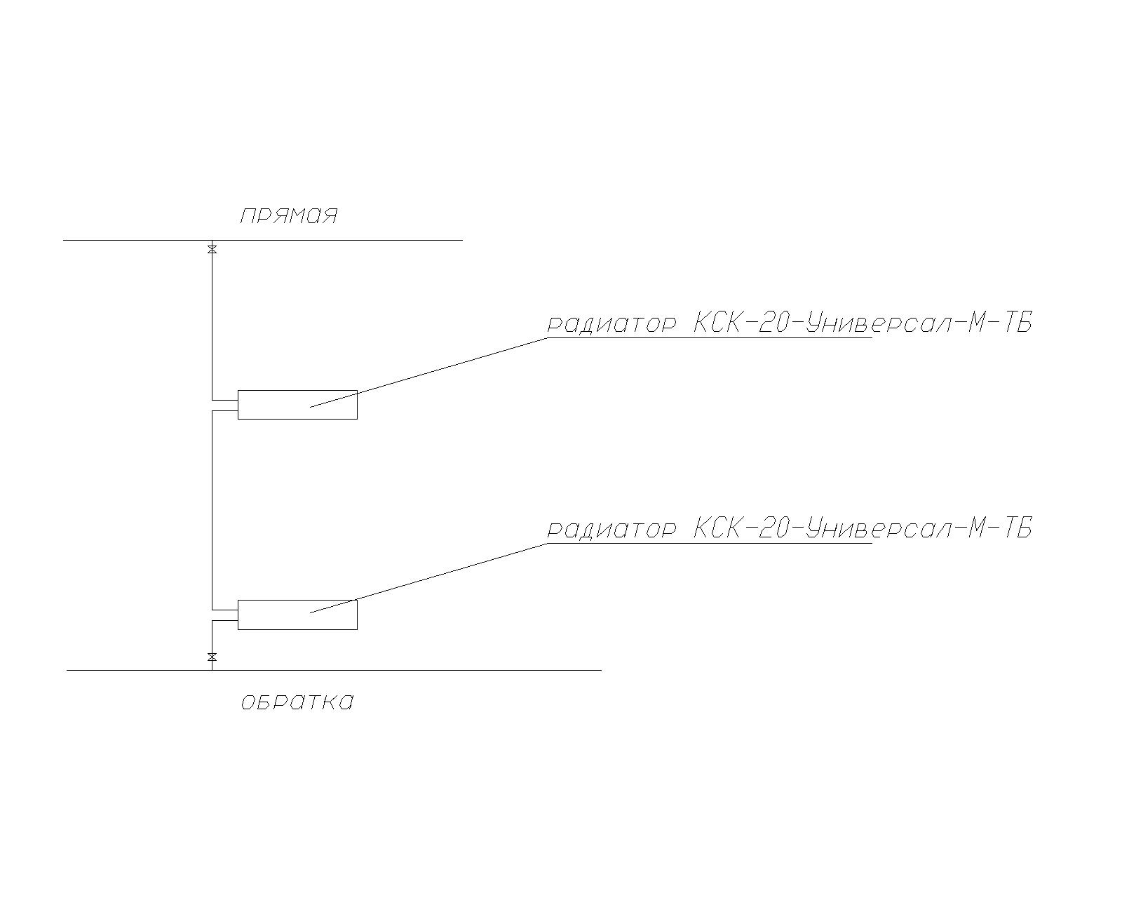 Извиняюсь, дал неполную информацию. это так мы хотим конвектора поставить в пристройку. в существующем же здании схема следующая... (на прилагаемом ниже рисунке) т.е. нет никаких балансировочных кранов и т.п. Следовательно хотим сделать по аналогии. И заказчик просит попроще и подешевле. Вопрос в том, по-моему, что будет большое сопротивление на новой ветке и следовательно конвекторы греть не будут... И можно ли такие конвекторы (Kermi KNN) так подключать, т.е. сверху-вниз и на следующий конвектор сверху-вниз. а зачем там перемычки?