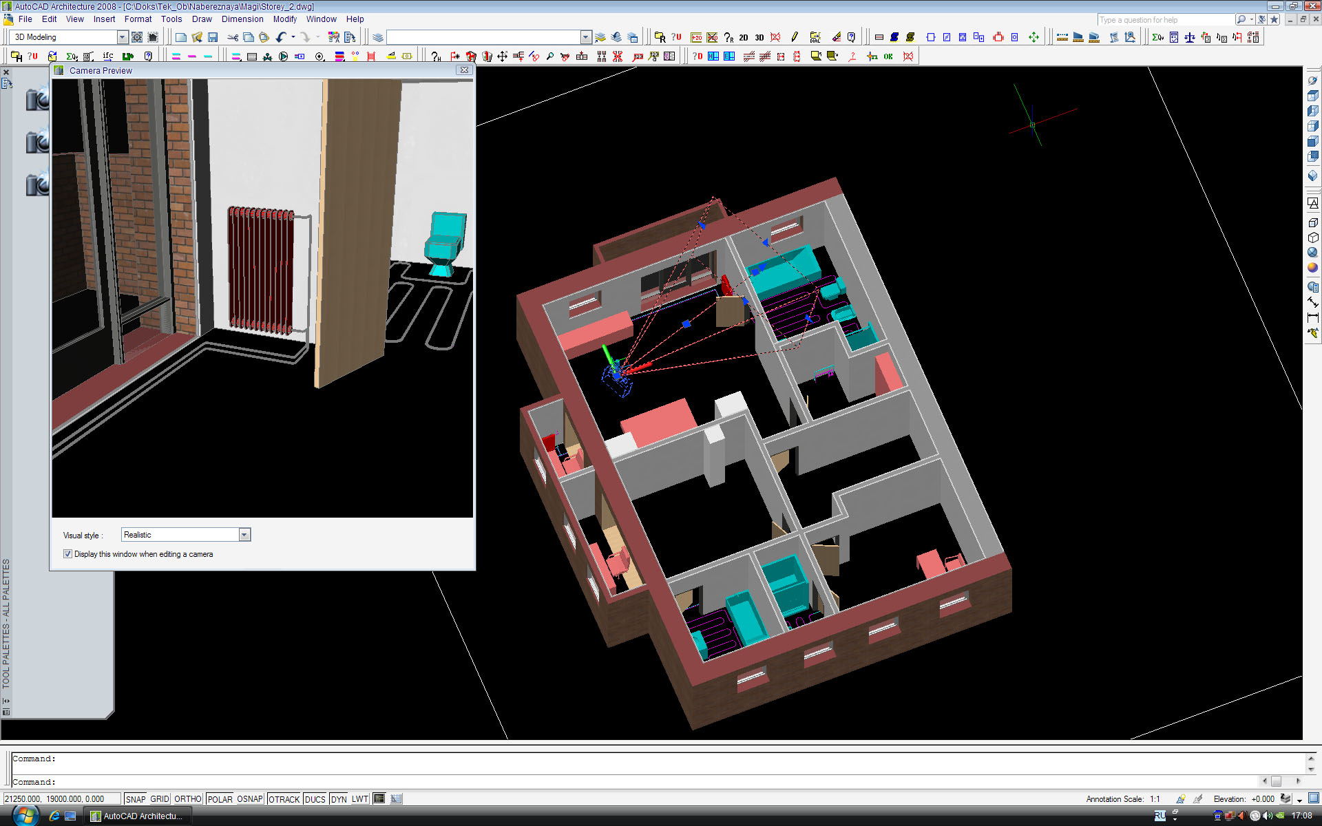 да какой тут спор. все ведь не посуществу. вот прицепились вы к тому, что у меня трубы под 90 гр. ну и что! я уже на это отвечал, мне не лень, процитирую ещё: "К тому же это не проект, в прямом смысле слова а расчет системы отопления. И трассировка предварительная." Это расчет. На основании этого расчета я могу себе представить всю систему отопления, разные узкие места, поиграться со скоростями, сопротивлениями и пр. вы по своему работаете, я по своему. насчет того, чтобы поменять трубу в пешеле, я это всерьез не воспринимаю. пойдем дальше. насчет "долбить, наращивать .... это не слова проектировщика". честно говоря я не уловил смысла фразы. если это в отрицательном смысле, тогда скажите почему. если вы против этого, так и я против. а что делать? это наверняка придется делать. насчет разбалансировки. а вы думаете, придется только удлинить трубы и все! ага, счас!  плохо вы знаете наших арендаторов. захотят и радиаторы переносить, и вообще убрать, и в размерах увеличить. чтобы вместо двух один, но большой. и еще много чего. насчет маркетинга и рекламы. это как посмотреть. я пока ничего не рекламирую, показываю свою методу расчета отопления и всё. хотя в принципе рекламирую: -MagiCAD это раз! Надо с прогмана за это деньги брать. -AutoCAD 2008 Architecture это два. Тоже надо бы что нибудь с них стрясти спасибо за комплимент:"Вот что честно признались, что занимаетесь маркетингом и рекламой своей фирмы - это похвально. В этом у Вас получается...." хотя он бессмысленный и с подтекстом, типа, а в остальном нихрена не получается. Кстати, для VANO: это все в AutoCAD 2008 Architecture.