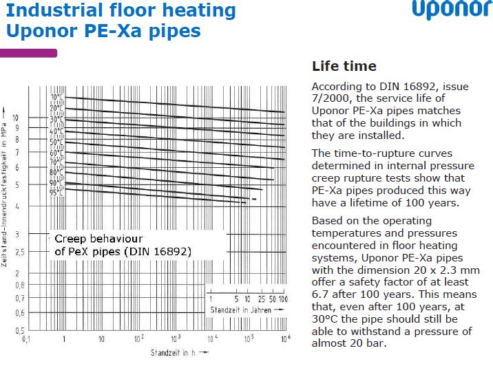 Rehau дает (при общении с официальным представителем) 100% гарантию всего на 5 лет при графике 95/70, а в своей литературе пишет 10 лет.