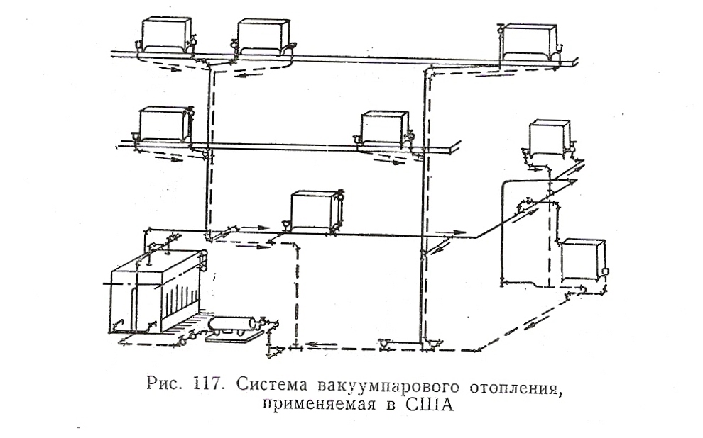 Как выясняется в американских паровых системах отрицательного давления вакуум насосы были, а то здесь прозвучало, что не было их. Такие системы были разработаны и у нас. Там применялся вакуум насос КВН-4 и КВН-8. Автор РальчукН.Т. гор. Киев 1956год, и стоял он на обратной перед котлом. Точно также как и в американской схеме.