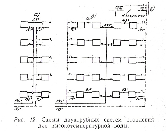 Сегодня представляю Вашему вниманию две "удивительных системы". На рис.12 схема разработаная автором Паэгле К. гор.Рига 1956год. Здесь,на мой взгляд, необходимо обратить внимание на левую схему "а", необычен способ подключения приборов используя перегретую воду. на рис 10 схема автора Герцмана. 1958год.Вам судить о ее достоинствах и недостатках, с точки зрения увязки колец,на мой взгляд это невозможно.