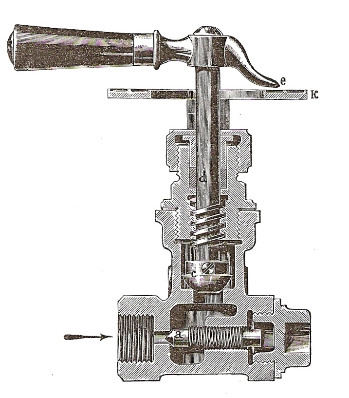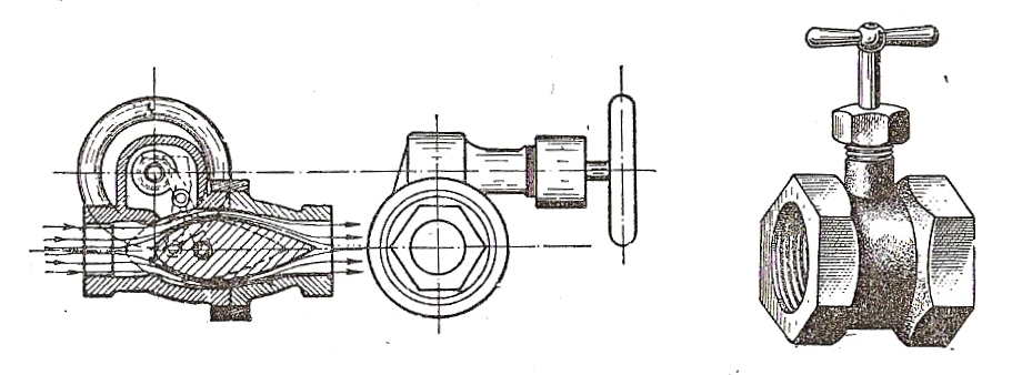 Куль Ра у этого крана вся фишка в том,что теплоноситель после игольчатой регулировки поступает в камеру золотника с, на рис. кран показан закрытым, и из этой камеры попадает в систему.Ручка стрелка показывает степень закрытия крана, ход у нее всего 90гр. А вот в другом варианте американский инженер-физик Иос.Гранд в 1932году поклялся, что он создаст лучший вентиль в мире,лучше чем вентиль "Косва", и создал нечто, для меня не совсем понятное,опубликовал это в журналах в мае 1932года. Об этом кране сказано следующее: золотником в этом кране служит тело вращения наиболее обтекаемой формы, передвигаемое рычажной передачей от наружного маховика по оси ствола вентильного типа. Вам судить о его достоинствах.