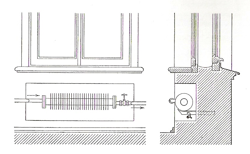Установка отопительных приборов заводчика Ф.К.Сан-Галли (еще до выпуска радиаторов) в домах состоятельных людей.Приблизительно 1880год.