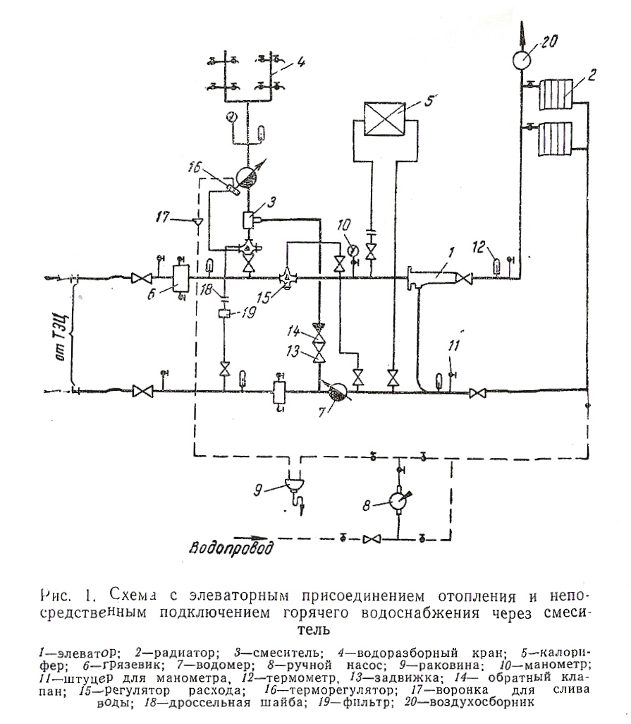 Посмотрите на схему теплового пункта,ей 50лет. Попробуйте с позиций сегоднашнего дня, добавить или убавить что либо.