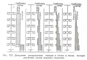 По предыдущей теме. Нигде не нахожу описания приготовления пара отрицательного давления. Или он приготавливался в каком-то вакуум котле, или редуцировался или вакуум создавался после редуктора.Ничего на сей счет в литературе не нахожу.Обращаюсь за советом на форум. Может господин Jota поможет или выскажет свое предположение.Без понятия этого вопроса как-то неудобно давать в книгу такой материал. Мне очень нравятся диаграммы прошлых лет, на них более доходчиво обьясняются различные процессы, чем выраженные просто голыми формулами.Представляю диаграмму рапределения напоров в стояках и малых кольцах. 1946год.
