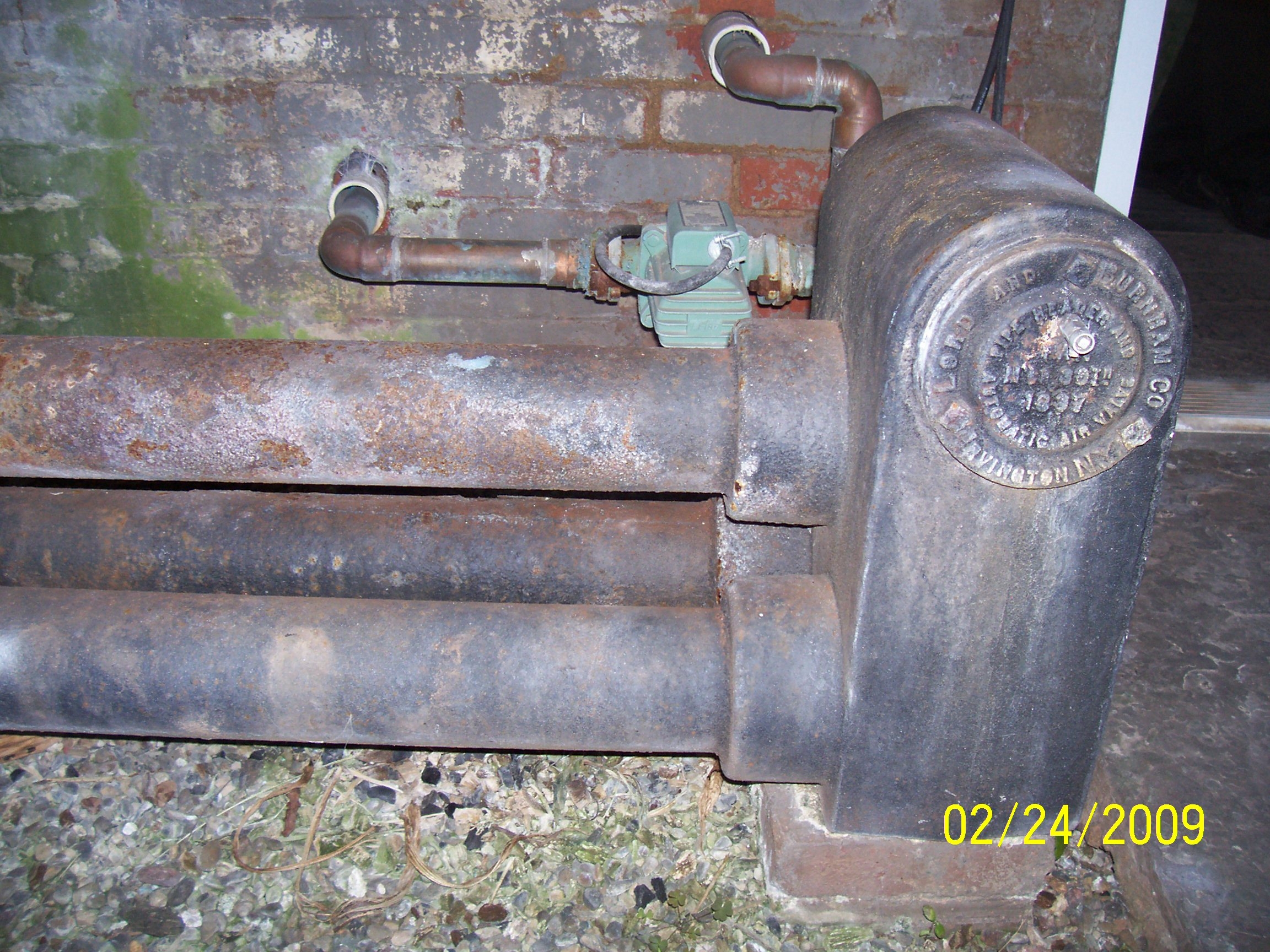 Обещал рсказать про систему на выхлопных газах. Итак есть четыре дизеля, от которых использованы выхлопные газы которые направлены в специальный водонагреватель расчитаный на 75600ккал\час. температура отходящих газов около 400гр.Каждый нагреватель, а их два, был запитан от двух дизелей.Размеры водонагревателя диаметр 610мм,высота 2,15м. В нем находится 28трубок диаметром 38мм.Сверху два входных патрубка для входа горячих газов, внизу выходной патрубок диаметром 175мм. Подвод воды и вывод диаметром 50мм. Вода через нагреватель циркулирует в системе отопления. Параметры теплоносителя при этом 77\38гр.Циркуляция насосная.Коротенько вот так.Есть фото нагревателя и его вид в разрезе.Информация из журнала "The Industrial Heatinq Enqineer" 1954год. Похожее видел в одной автобазе , но там отвод газов шлангом от каждого автомобиля был сделан в трубчатый коллектор который был замоноличен в полу. Поэтому они были теплые.