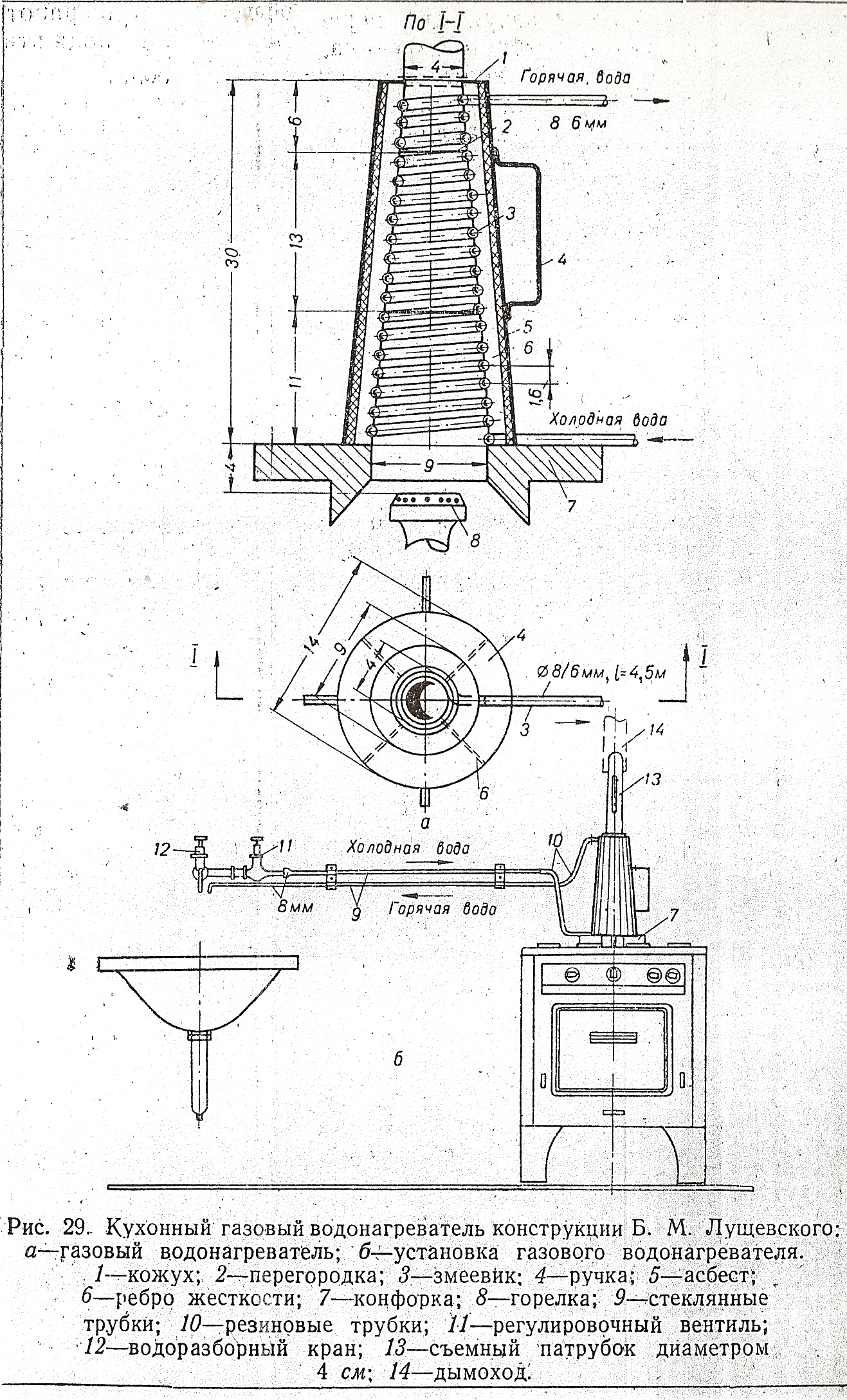 А эта приспособа и сейчас была бы актуальна кое-где. Где газ есть, а электричество (бойлер-подогреватель) по лимиту или не всегда. Сам такое хотел во студенчестве соорудить, да змеевика не нашёл подходящего, а потом горячую воду дали и забылось... Вот сейчас вспомнилось  . Да и посудомоечная машина сейчас есть и стиральная есть и легковая есть... скучно.