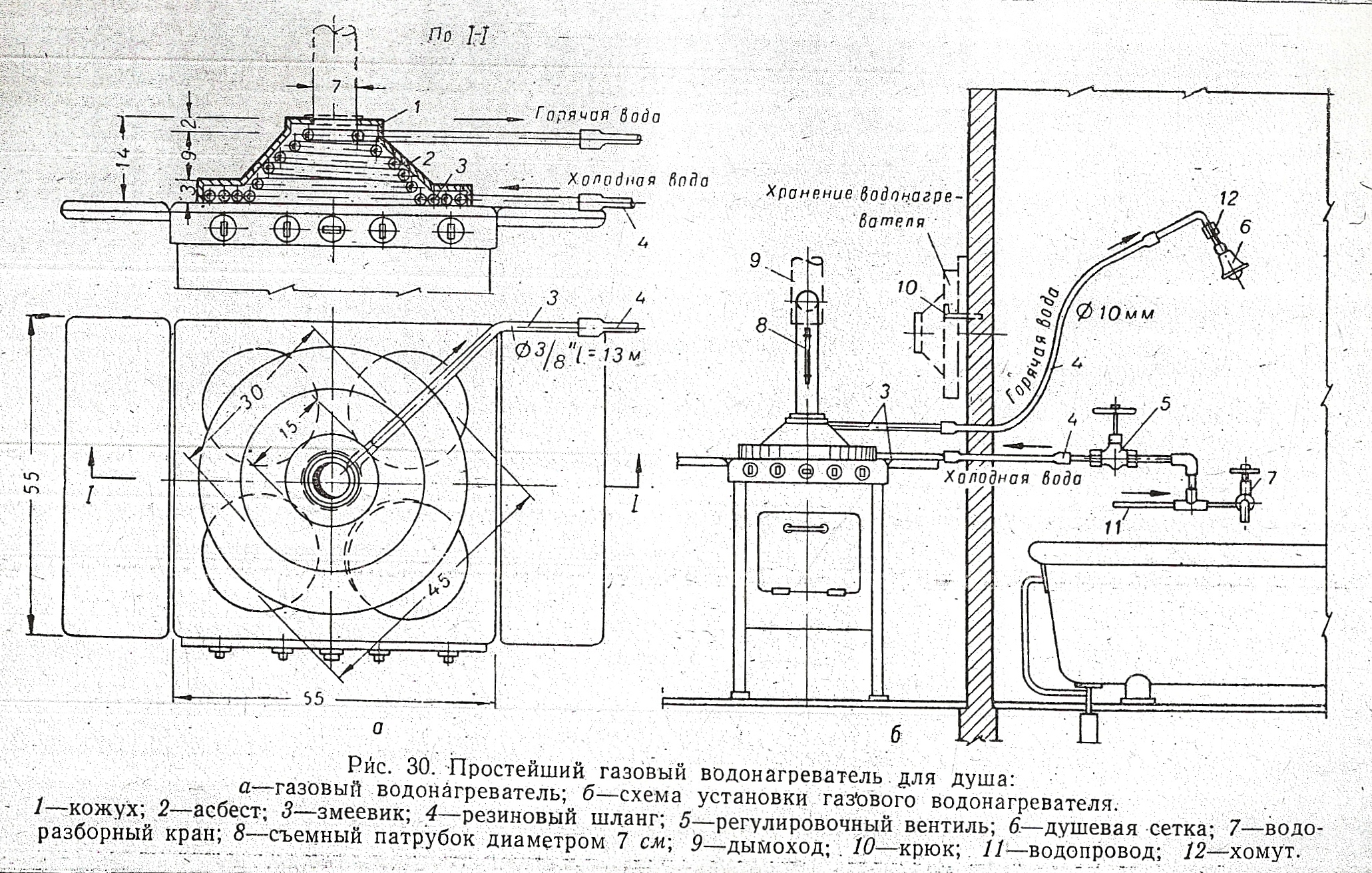 При просмотре различных материалов по системам отопления иногда попадаются материалы не имеющие отношения к отоплению,но довольно любопытные и забавные с позиций сегодняшнего дня. Посмотрите хтя бы на это.Приблизительно 1949год. Только началась массовая газификчия жилых домов.На отопление естественно газ не давали,газовые колонки только осваивались и вот такое приспособление.